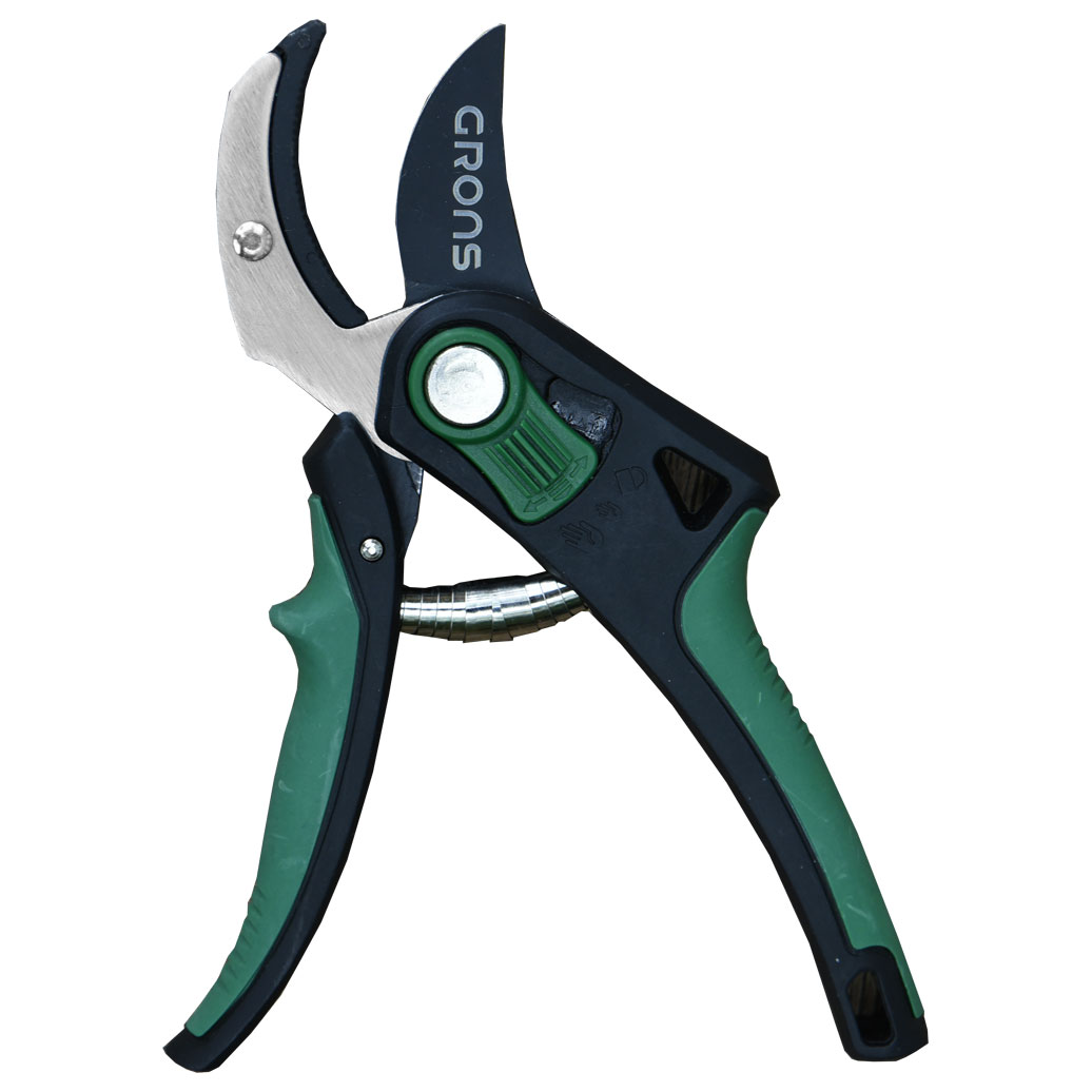 Диаметр срезаемой ветви: 20 мм Длина инструмента: 215 мм Вес: 230 г Контактный секатор для удаления сухих ветвей и обрезки деревьев и кустарников с плотной древесиной - декоративных форм дуба, бука, клена канадского, ясеня, березы, кизила, акции, граба, самшита, рябины, яблони. Особая система фиксации рукояток подходит как для большой, так и для маленькой руки. Преимущества: Эргономичная модель. Заточка на весь срок Вставки из термопластичной резины. Прочные нержавеющие лезвия из высокоуглеродистой стали, прошедшие термическую обработку. Замок с фиксацией лезвий в трех положениях. Антикоррозийное антифрикционное покрытие. Для работы с сухой и твердой древесиной. Регулировка для большой и маленькой руки.